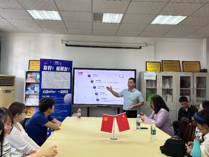 會上,陳經(jīng)理以幽默風趣的敘事方式吸引了同學們的注意,他將自己畢業(yè)后的求職故事和創(chuàng)業(yè)經(jīng)歷娓娓道來,并講述了漢普集團從一個六人團隊發(fā)展為較大型團隊的歷程。